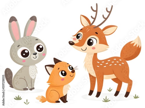 Cute woodland animals together rabbit fox and deer