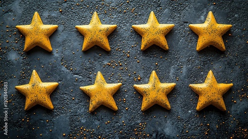 Cute yellow decorative stars sparse on a neutral gray background with copy space for text.