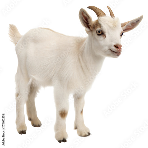 Cute young goat, white or transparent isolate background