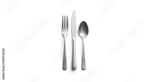 Cutlery set with Fork, Knife and Spoon isolated on white background