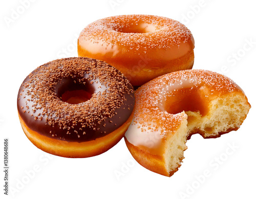 Cutout donuts on transparent background. Generative AI image