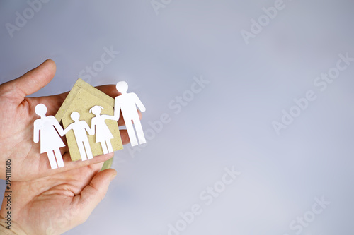 Cutout paper chain family with the protection of cupped hands, concept for security and care