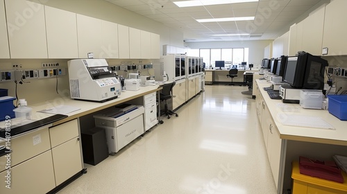 Cutting-edge lab setup with scientists conducting breakthrough experiments; automated systems assist in developing treatments.