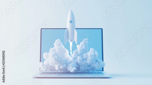 Cutting-edge laptop with rocket blasting into cyberspace Images