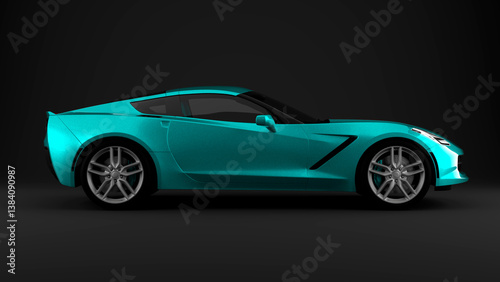cyan sports car on grey side view