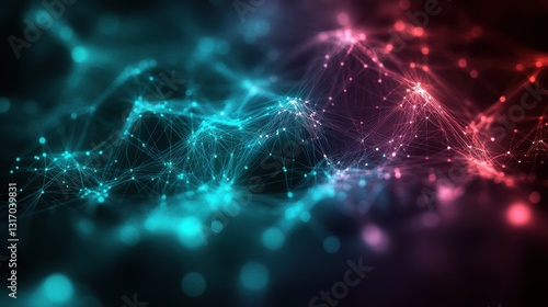 Cyber Big Data Flow Particles Bokeh. Digital Neural Network. Concept of AI Artificial Intelligence Technology Machine Deep Learning. Digital Communication. Science Technology Presentation
