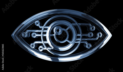 Cyber eye espionage big brother and hacking symbol digital 3d illustration