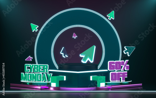 cyber Monday special offer discount podium display background for product presentation. 3d rendering