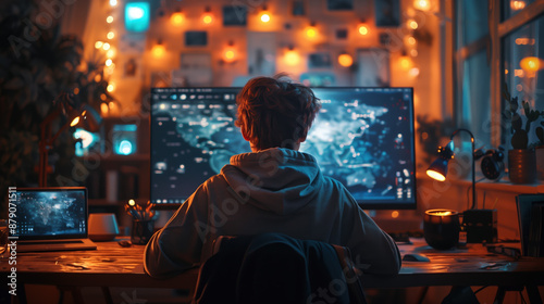 Cyber Scam Protection Strategy: Hacker, Laptop, Binary Code, Neo-Academism