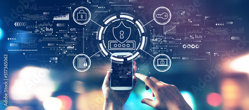 Cyber security theme with city lights at night