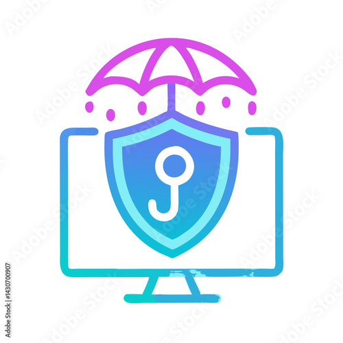 Cyber Security with Umbrella and Shield on a Monitor