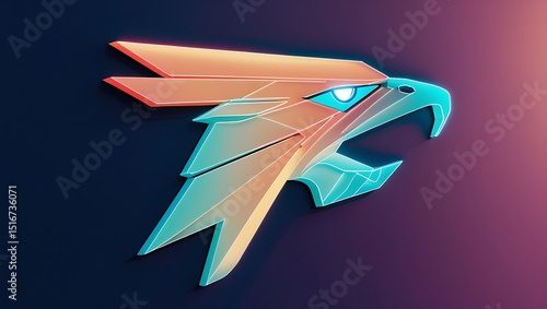 Cybernetic eagle head in glowing pastel lines, representing precision, vision, and digital strength in futuristic form. Golden Eagle logo. Futuristic eagle logo.