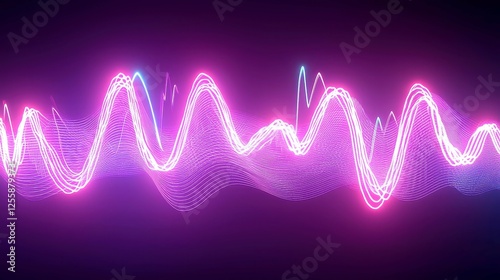 Cybernetic Heartbeat Waves, digital distortion creating vibrant, geometric patterns, cool neon colors reflect a pop art aesthetic in a striking visual experience.