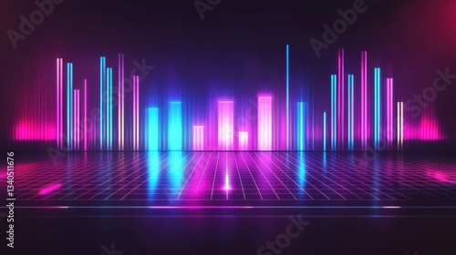 Cybernetic Soundscape: An immersive digital visualization of sound waves pulsating with vibrant neon lights, painting an abstract, futuristic atmosphere.