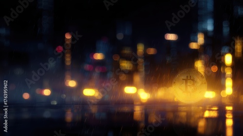 cyberpunk bitcoin concept, digital art with glowing city lights