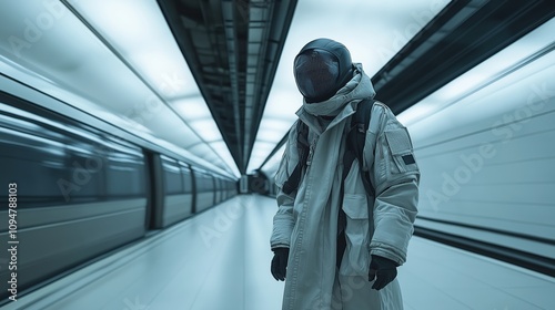 Cyberpunk Character in a Minimalist Subway Tunnel