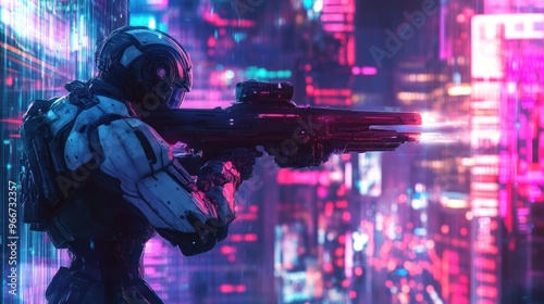 Cyberpunk City - futuristic soldier