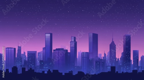 Cyberpunk cityscape with dark blue and purple hues under a night sky, futuristic urban landscape for digital wallpapers