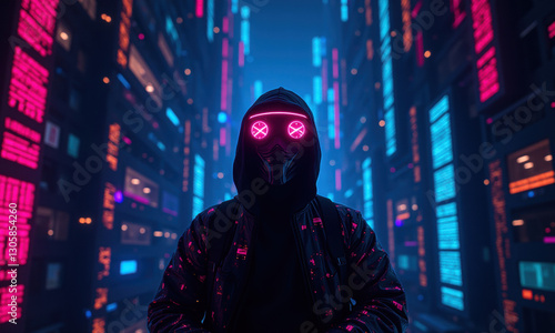 Cyberpunk Hacker Neon Mask Cityscape - Cyberpunk