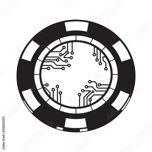 Cyberpunk Poker Chip Icon Black and White Vector Apparel Print D
