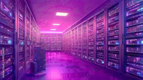 Cyberpunk Server Room: Neon Lights and Futuristic Tech