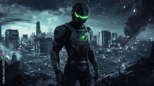 Cyberpunk Soldier in a Post-Apocalyptic City