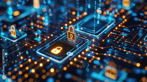 cybersecurity concept Global network security technology, business people protect personal information. Encryption with a padlock icon on the virtual interface.