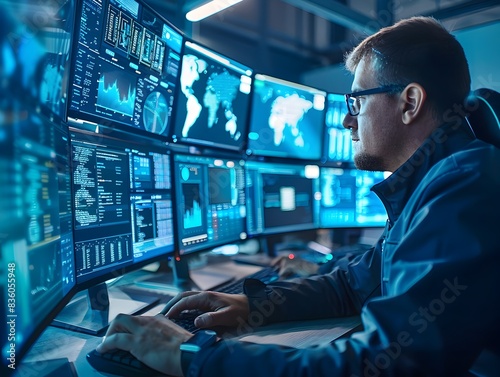 Cybersecurity Experts Monitoring Screens for Network Vulnerabilities Technology Concept