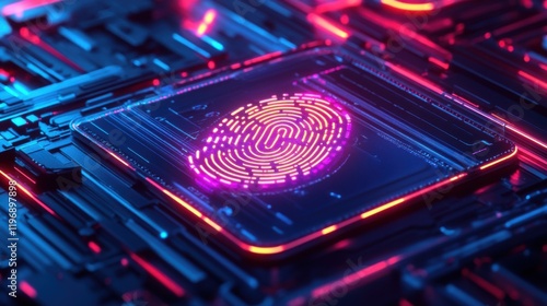Cybersecurity Fingerprint Biometric Neon Digital Tech Future