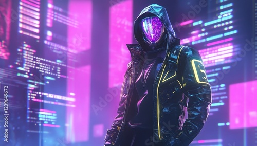 Cybersecurity network technologies, data protection system, neon lights. Stocks