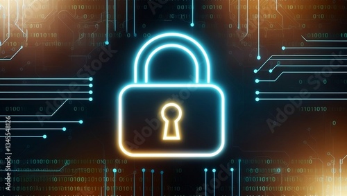 Cybersecurity padlock with a modern neon glow. Protect your data with robust digital security! Essential data protection & encryption