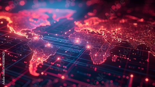 Cybersecurity Threats World Map Digital Interface Data Breaches and Attacks