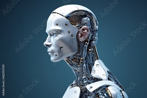 Cyborg man. Cyborg head. Cybernetic organism. Mechanical robot. Future technologies. Artificial intelligence.