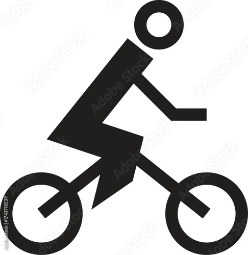Cyclist glyph icon, flat black geometric symbol of a person riding a bicycle. Bold minimal vector illustration representing movement, speed, fitness, and transportation. Rider Icon Symbol