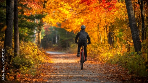 Cyclist Riding Through a Fall Foliage Path