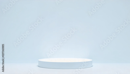 Cylindrical white ceramic podium on white background with many plant shadows. Perfect platform for showing your products. Three dimensional illustration