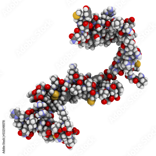 Cystatin C (V57D mutant). Protein used as biomarker of kidney function. 3D rendering based on protein data bank entry 3sva.