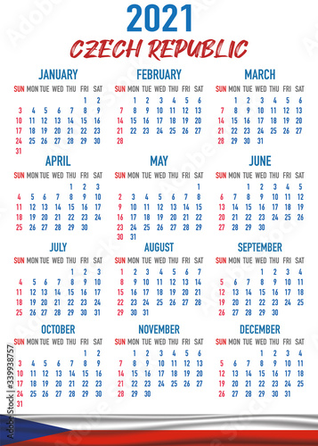 Czech Republic Calendar with flag. Month, day, week. Simply flat design. Vector illustration background for desktop, business, reminder, planner