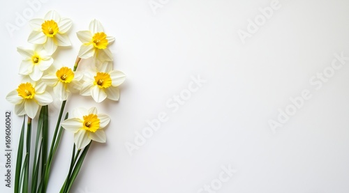 Daffodil Bouquet Arranged on a Plain Background Showcasing Springtime Beauty and Freshness