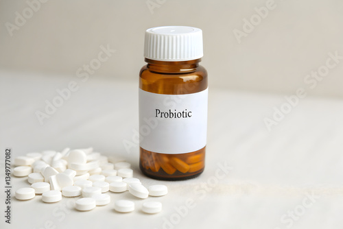 Daily Probiotic Supplement for Digestive Balance, Healthcare Concept with Supplement Bottle