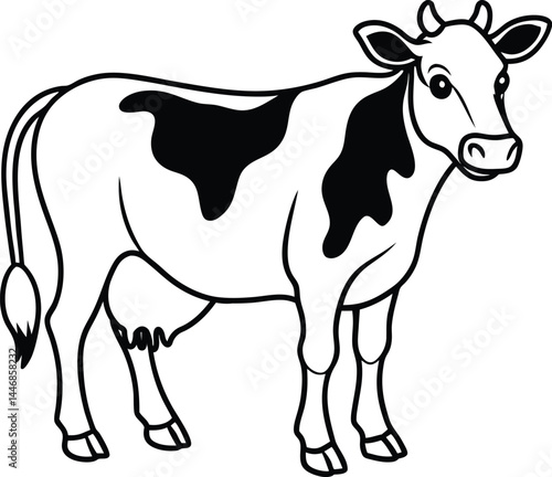 Dairy Cow Outline Graphic Cartoon Livestock Drawing.