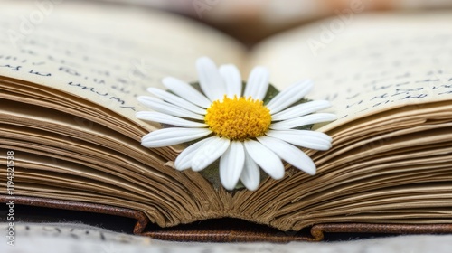 Daisy Resting on Open Journal - A Moment of Reflection and Nature's Beauty in a Cozy Setting