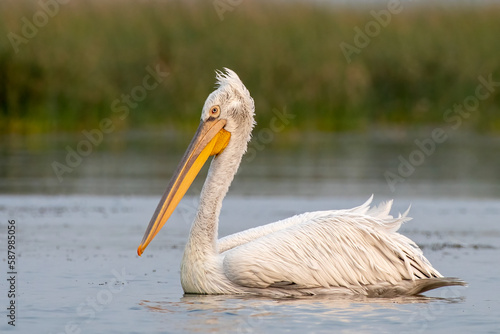 Dalmatian pelican or Pelecanus crispus, observed in Nalsarovar in Gujarat, India