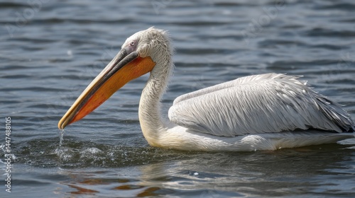 Dalmatian Pelican Serenity: Swimming Bird Portrait