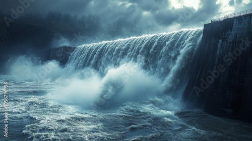 Dam Overflowing With Powerful Water Flow