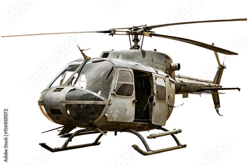 Damaged military helicopter isolated on a white background png ai generated