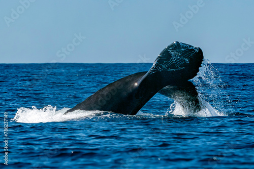 damaged tail humpback whale in pacific ocean baja california sur mexico