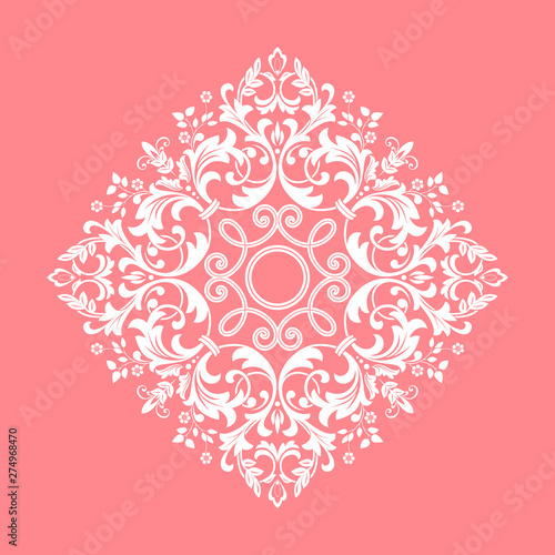 Damask graphic ornament. Floral design element. Pink vector pattern