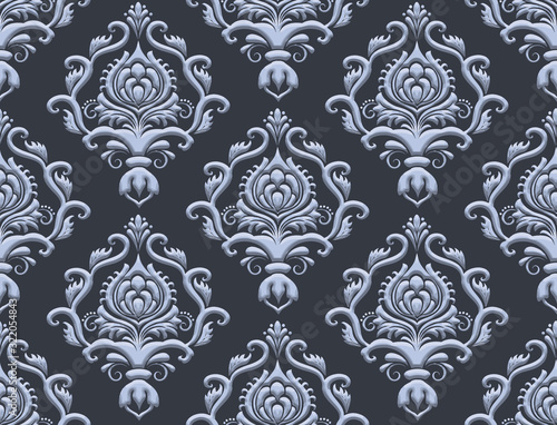 Damask seamless emboss pattern background. Vector classical luxury old damask ornament, royal victorian seamless texture for wallpapers, textile, wrapping. Vintage exquisite floral baroque template.