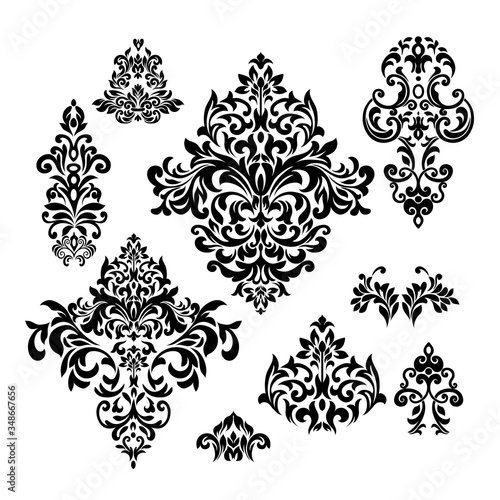 Damask white and black ornament.Traditional pattern.Decorative element eastern tracery.Floral ,victorian,baroque,Indian design. Texture for arabic wallpapers.